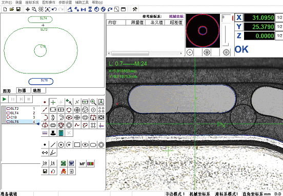 软件功能: 2D、2.5D元素测量:点、线、圆、圆弧、椭圆、距离、角度、矩形、O形环、槽型、开云线、闭云线、同心度、深度、平行度、对称度、垂直度、高度、平面距、倾斜度。 3D元素测量:圆柱体、圆椎体、球体等。 组合元素测量:两点距离、两线距离、点到线距离、点到圆距离、线到圆距离、圆心距、两线交点、组合角度、角平分线、两线中线、三点组合圆、线圆切点。 | |||
