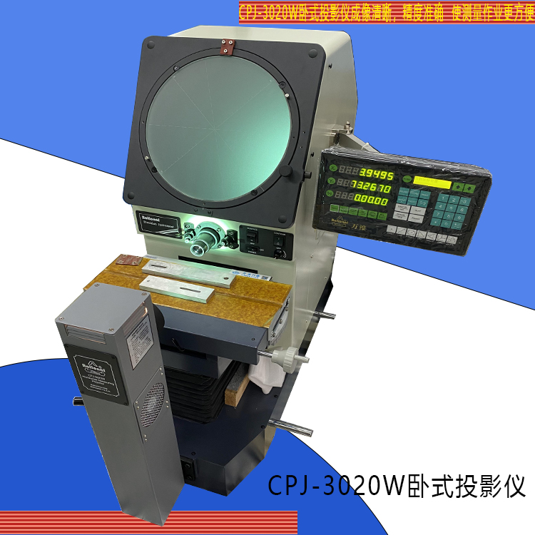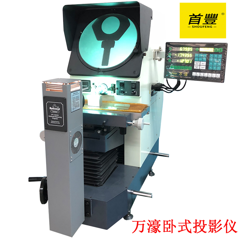 卧式投影仪具有稳定可靠的机械结构和高精度的放大倍率。可将被测工件的轮廓、截面和表面形状准确的成像到投影屏上,最适于刀具、齿轮、螺纹、弹簧等轮廓形状的观察与测量。