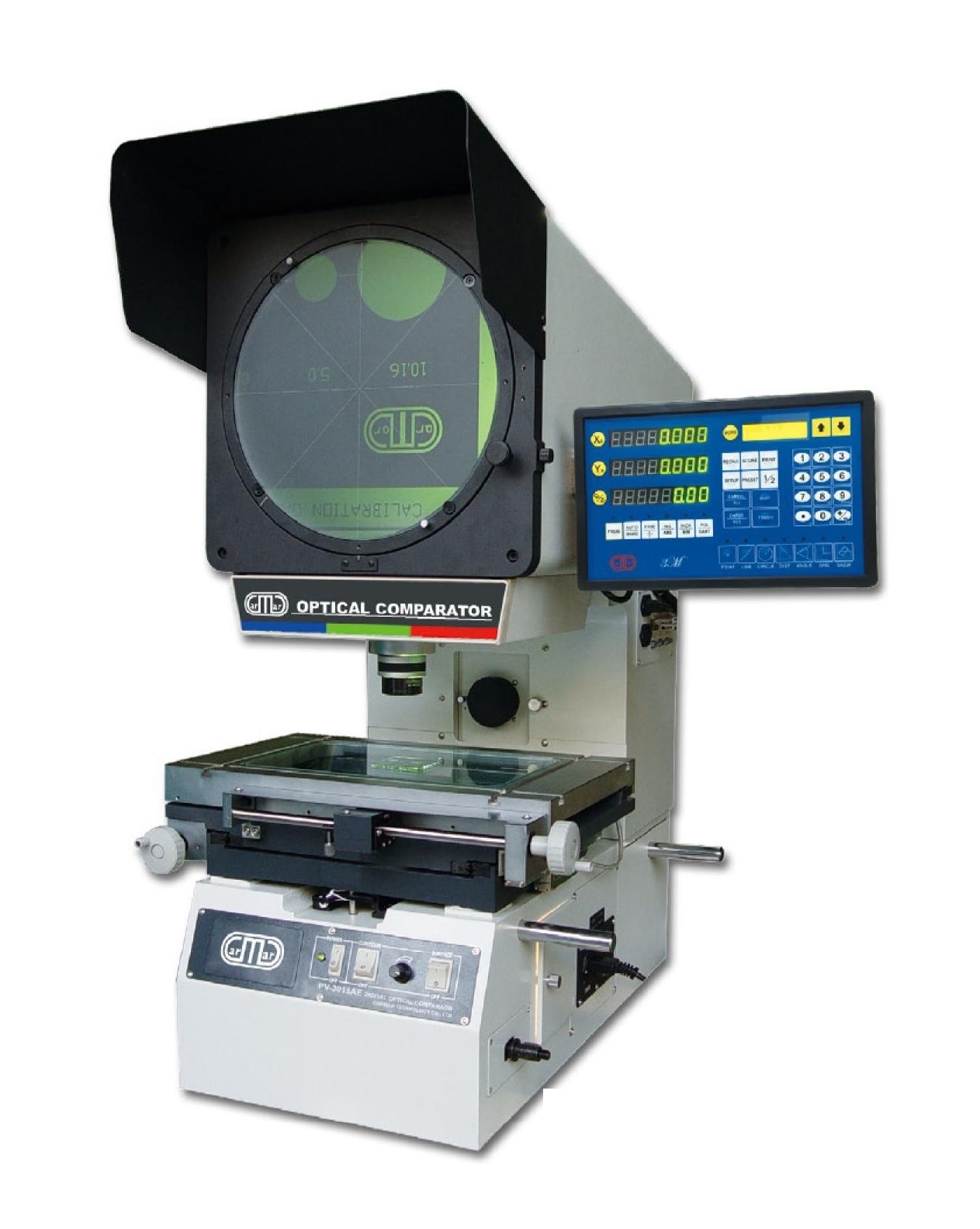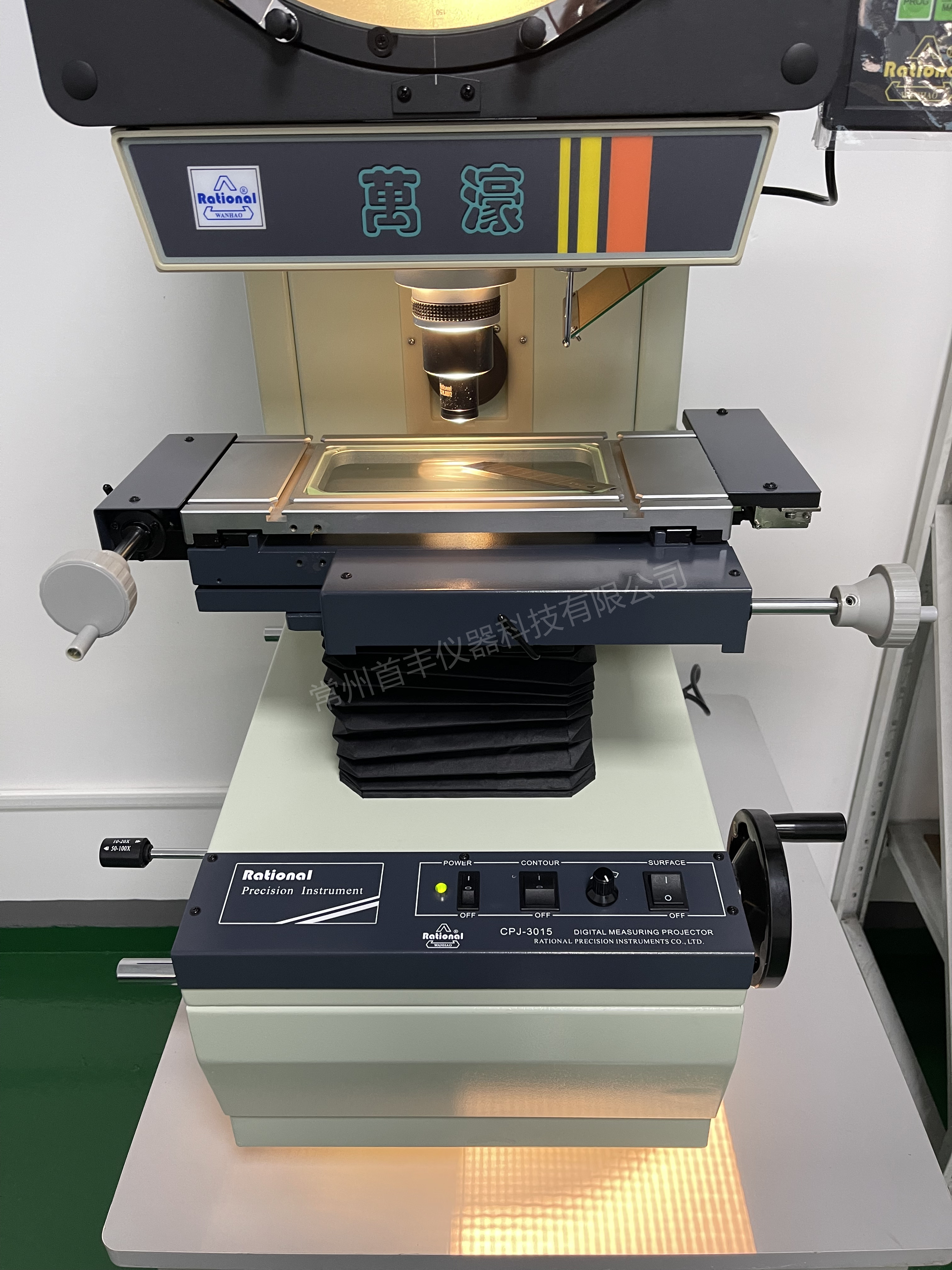 CPJ-3000CZ系列数字式测量投影仪整机质量优良,性能稳定。仪器配有脚踏开关和多功能数据处理表DC-3000,数据输出和采样十分方便,使测量更快捷,效率更高。仪器配有物镜旋转盘,可同时配备三个物镜,在不同放大倍率工作时,只须旋转转盘即可,不需要再单独更换物镜,操作更加方便简单;仪器调焦由投影筒升降实现,行程大,稳定性好;工作台不升降,增强了稳定性,测量范围大,精度高。