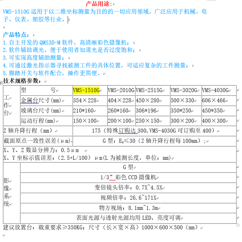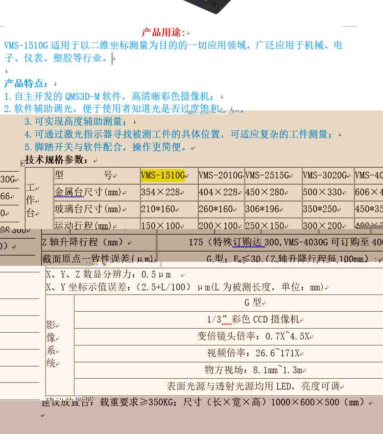 | Z轴升降行程(mm) | 150(特殊订购达300,VMS-4030G可订购至400) | |||||